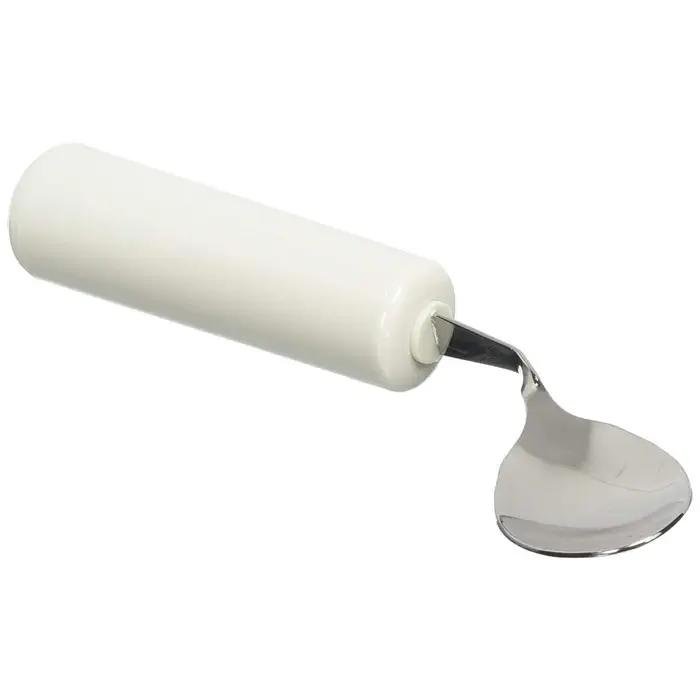 The utensils are mounted at an angle to facilitate easier use for individuals with limited wrist movement.