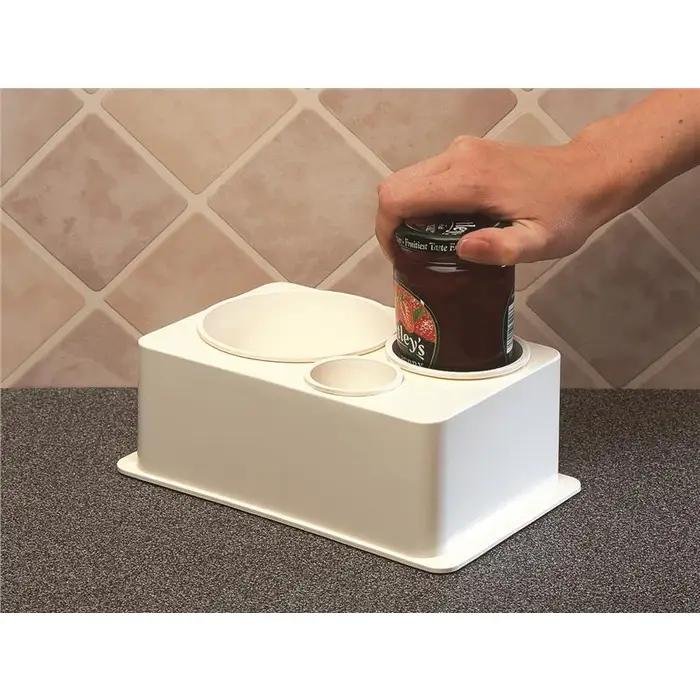 The SpillNot Jar and Bottle Opener is designed to assist individuals with limited hand strength or dexterity in opening jars and bottles independently.