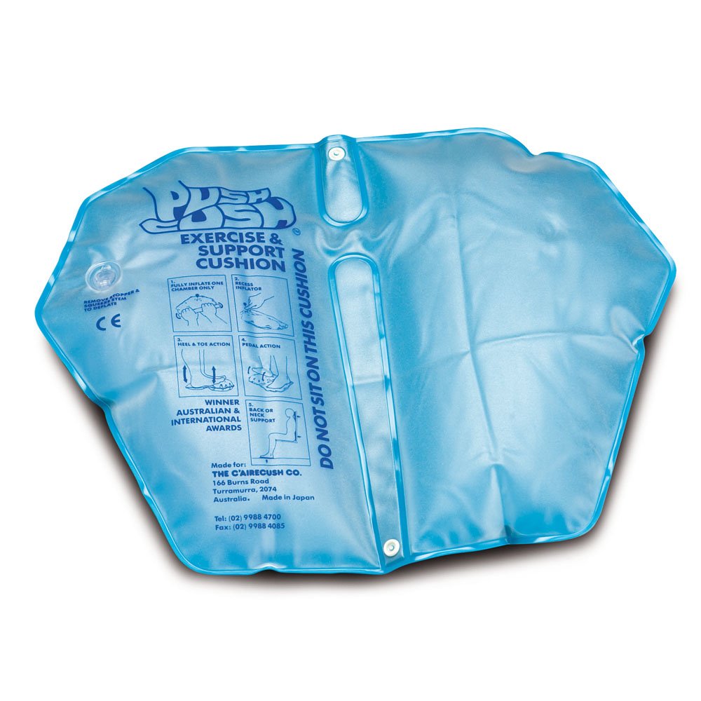 The Push Cush is an award-winning inflatable foot cushion and exercise aid designed to relieve swollen legs and feet, particularly during travel or long periods of sitting. It is ideal for those suffering from fluid and circulatory problems. The pedal/treadle action exercises promote circulation and oxygen flow to the legs and feet, working important muscles and keeping joints mobile. It is widely used to prevent Deep Vein Thrombosis (DVT) for those traveling in confined positions.